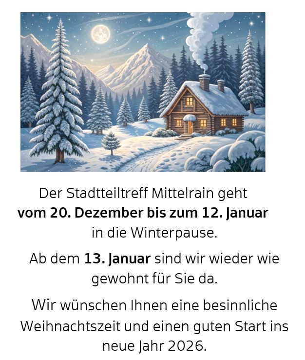 Weihnachtspause im Stadtteiltreff Mittelrain!