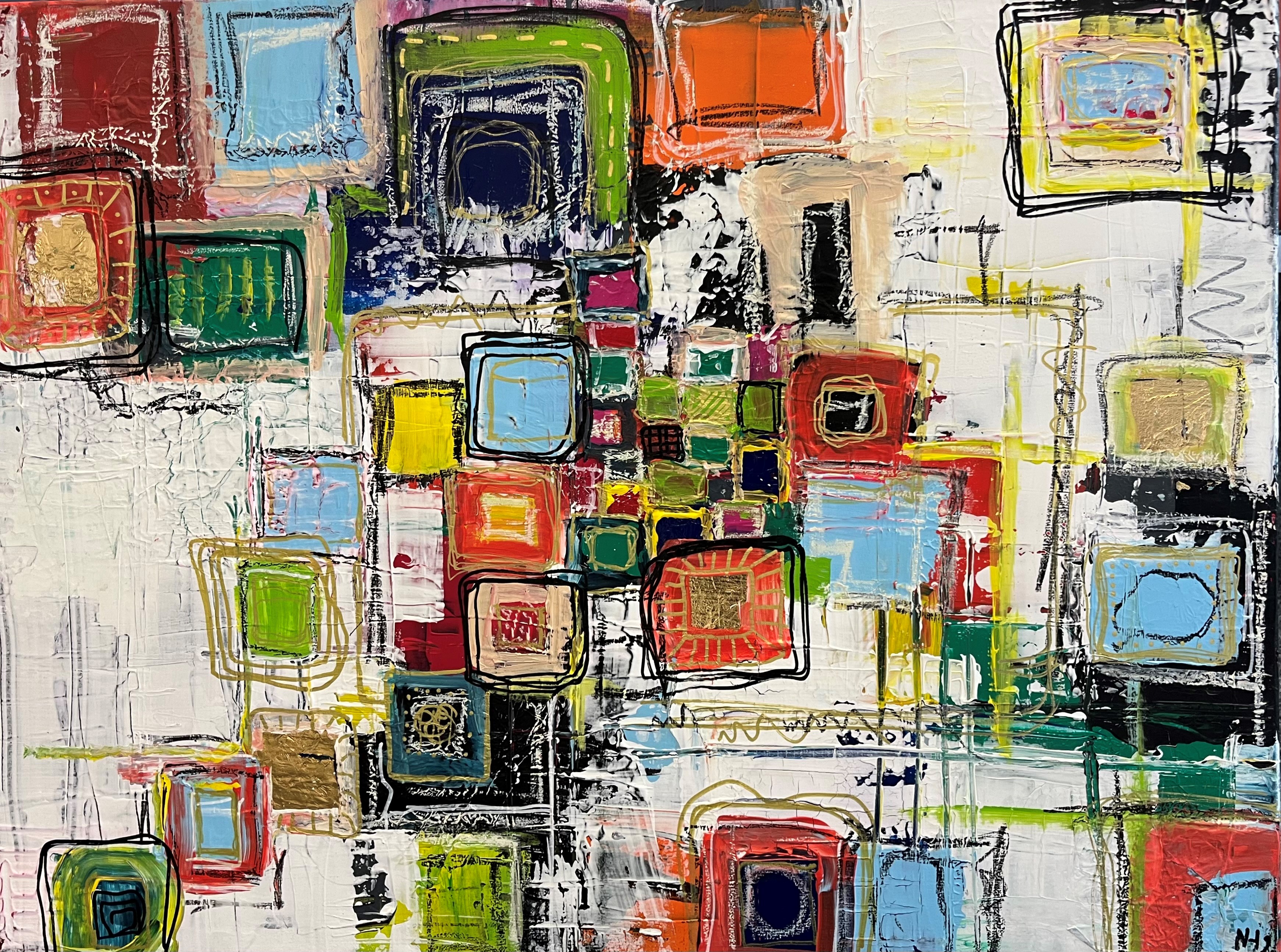 Ab dem 30. August gibt es im Stadtteiltreff Mittelrain eine Ausstellung mit abstrakter Kunst.
