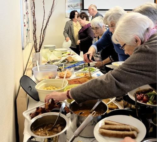 Der Tisch war reichlich gedeckt und die Stimmung wunderbar. Nach dem leckeren Essen gab es gute Gespräche. Wer wollte, hatte die Möglichkeit gemeinsam in einer Gruppe Spiele zu spielen.