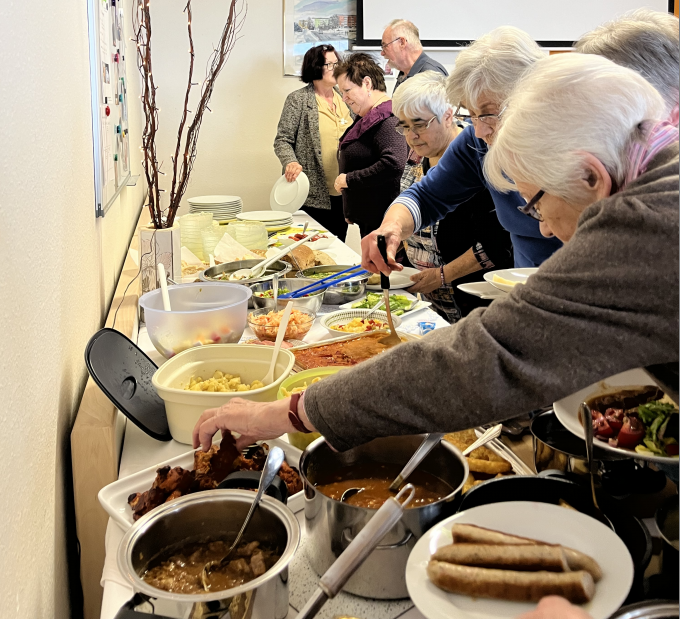 Am Montag, den 25.03.2024 veranstalteten die Bewohner aus dem Stadtteil Zanger Berg gemeinschaftlich ein leckeres und vielfältiges Mittagessen im Stadtteiltreff. Bei fröhlicher Stimmung und regen Gesprächen wurden gemeinsam verschiedene frisch gekochte Köstlichkeiten zubereitet und gegessen. Nicht nur bei den vielfältigen Gerichten, sondern auch bei der frühlingshaften Dekoration der Tische mit Blumen und Osterhasen gaben sich alle Teilnehmer viel Mühe.Anschließend ließen die Besucher den Nachmittag bei Kaffee und selbstgebackenem Kuchen in einer Spielerunde ausklingen.